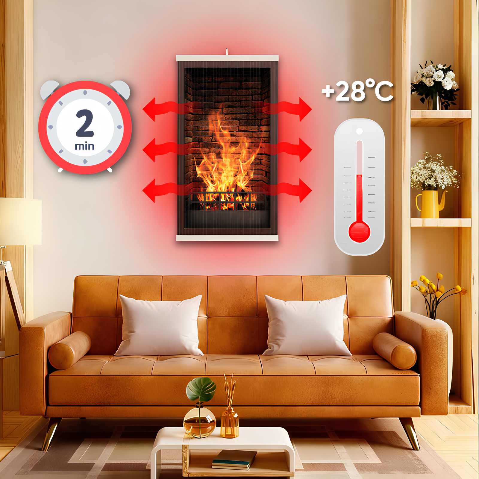 Ez a hatás a szénszálak felmelegítésekor keletkező hosszú hullámú infravörös sugárzás révén valósul meg, amely a nap természetes melegének elvén alapul. A fűtőtest közvetlenül melegíti az embereket, a tárgyakat, valamint a helyiség falait és padlóját, így a bekapcsolás után azonnal érezhető a kellemes hő, amely hosszú ideig megmarad a helyiségben. A szénszálak kiváló hővezető képessége nemcsak hatékony fűtést biztosít, hanem az energiafogyasztást is csökkenti, lehetővé téve a jelentős megtakarítást a fűtési költségekben.