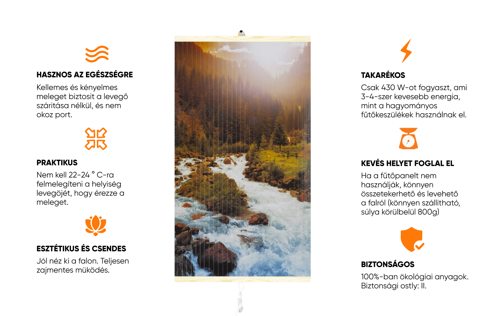 EasyHeater Mountain River – Dekoratív elektromos infravörös fűtőpanel