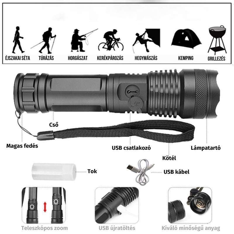 A szuper erős fényű zseblámpa a legjobb eszköz, amely tökéletes segítséget nyújt   a  munka és a szabadtéri tevékenységek elvégzésében.