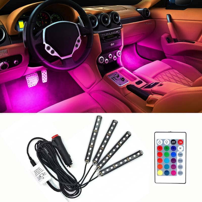 Autós távirányítós belső RGB LED világítás. Egyszerű összeszerelés a speciális 3M kétoldalas szalagnak köszönhetően. Hosszú kábelek lehetővé teszik a LED csíkok kényelmes elosztását a járműben! A csikok szilikon bevonatja biztosítja a vízállóságukat! A szalagok bárhová felszerelhetők az autóban.