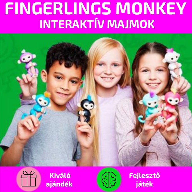 A Fingerlings Monkey interaktív játék – egy kézi elektronikus, nagyon vicces majom, amely imádja szorosan fogni az ujját a kezével és a lábával, és fejjel lefelé is lóghat a farkával kapaszkodva.