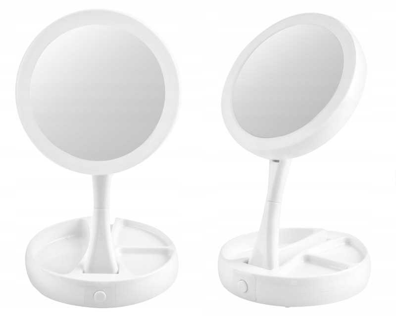 - Hordozható – a LED-es megvilágított tükör teljesen összecsukható és kevés helyet foglal el. Elemmel is működik – bárhol használhatja, anélkül, hogy aggódna az áramforrás miatt. Otthon, szépségszalonban és utazás közben is működni fog. Ajándékként is tökéletes.