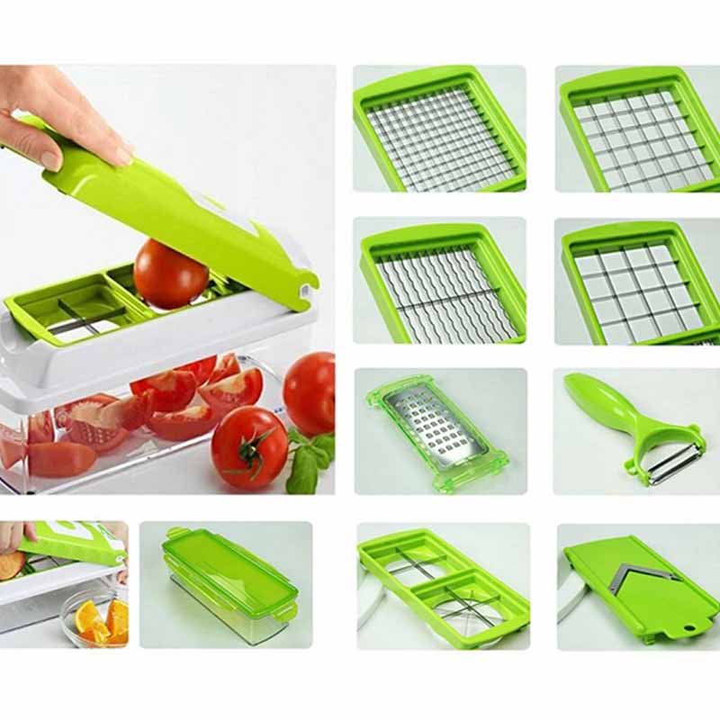 Ez egy többfunkciós eszköz, zöldségek és gyümölcsök szeletelésére, megkönnyíti a konyhai munkát. Az összes gyümölcsöt, zöldséget, főtt tojást vagy sajtot tökéletesen kockákra vagy csíkokra vágja, káposztát is szeletelhet. Reszelheti a sajtot közvetlenül a tartályba. A tartálynak köszönhetően ezentúl nem pazaroljuk el az ételt.