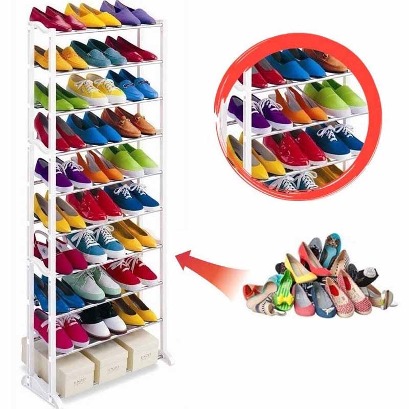 A többszintű cipőpolc nagyon könnyű és stabil. Tökéletes az üzletekben, irodákban és otthonokban. Akár 30 pár cipő is elfér rajta