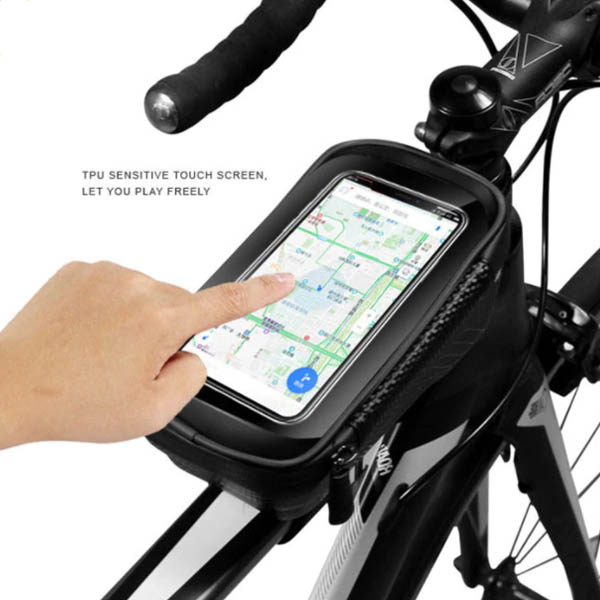 Vízálló kerékpártáska telefon és kis tárgyak tárolójával